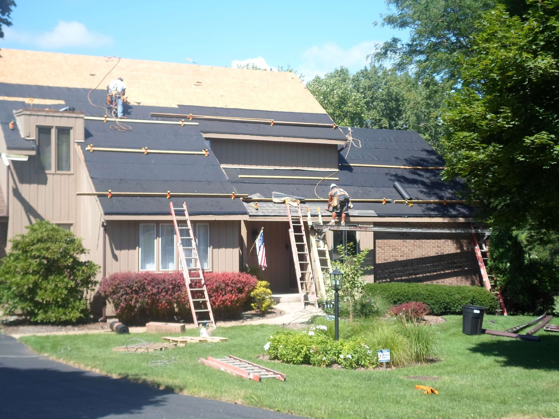 - Full roof tear-off and debris removal